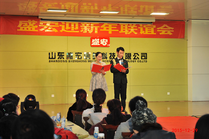 2015年12月29日,盛宏公司多功能会议室里人声鼎沸、张灯结彩,并搭起T型舞台,“盛宏迎新年联谊会”在这里热烈举行。盛宏公司董事长刘希山与夫人乔桂美、总经理王秋萍、市女企业家创业联盟的女企业家、盛宏联盟会员及社会各界朋友出席联谊会并观看了演出。小海豚口才学校、枫叶红组合、女企业家创业联盟、盛宏老年舞蹈队等参加了演出。刘希山董事长、王秋萍总经理分别讲话,向全国广大用户、1200多家服务中心人员、盛宏员工以及社会各界朋友致以新年祝福! 歌舞《向快乐出发》、《圆梦青春》、《家和万事兴》、《盛宏赞歌》、《红旗飘飘》、《中国范》以及旗袍秀《莲花》等精彩纷呈的节目,把观众带入激情与美妙交融的境界。全国武术冠军孙爱文大师的陈式太极拳表演更是将节目推向高潮。 两年前曾患肺癌晚期被医院判了“死刑”、得到刘希山教授爱心救治获得康复的烟台栖霞林秀民女士也不远千里赶到现场,她自编自唱《解除病魔乐晚年》献给恩人刘希山教授,感动了现场所有的人。现场还进行了抽奖和发红包活动。 |