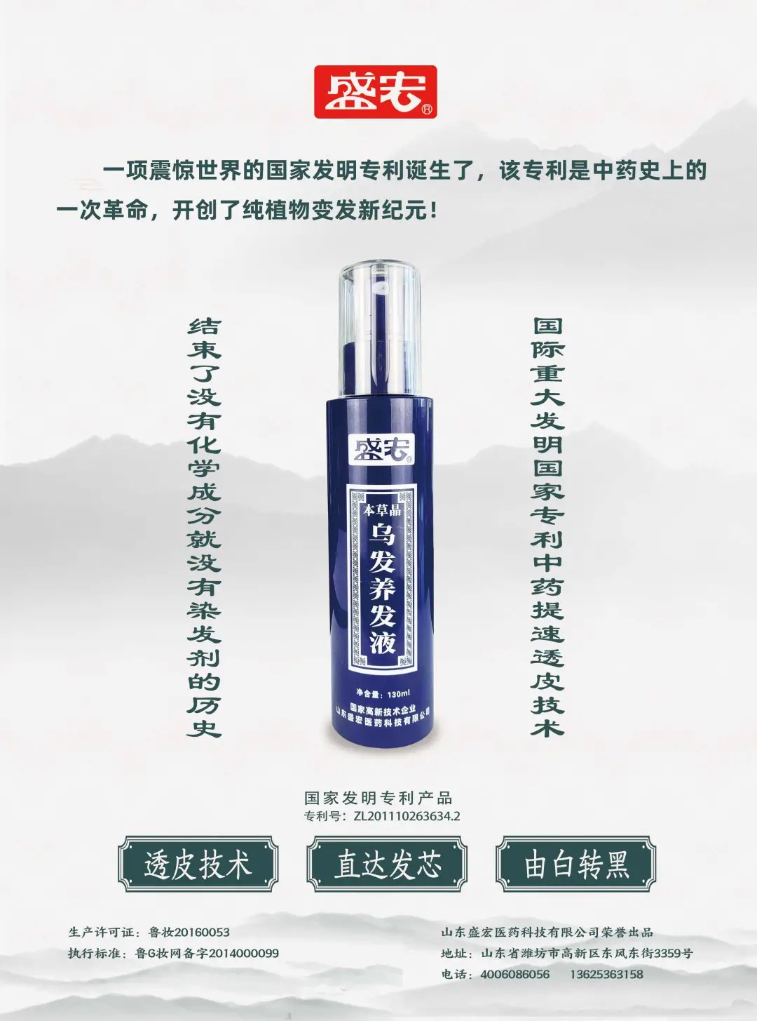 新品的发明来自一项震惊世界的透皮技术;没有透皮技术,就没有中药提速。乌发养发液是中药提速新成果,它的诞生结束了染发剂必须用有害化学成分的历史。乌发养发液是采用中药配伍产生的“透皮因子”,直接作用于皮下,迅速渗透至毛囊,营养毛母细胞,促进毛母细胞分裂,补充头发生长所需的营养物质,达到快速生发、养发并让白发渐渐变黑发的目的。纯植物提取,无任何化学成分,从源头上改善各种头发问题,并有让皮肤光滑水润祛皱的效果。