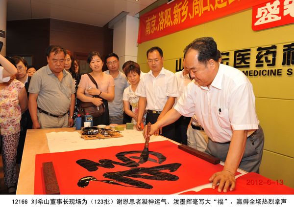 “中药提速,济世良医”、“弘扬中医国粹,振奋民族精神!” 2012年6月13日,南京、洛阳、新乡、周口、连云港等两省五地市的300多名康复患者手托着一面面锦旗到达盛宏公司谢恩。因治愈了股骨头坏死、腰椎间盘突出、关节炎、肩周炎等顽疾到盛宏拜谢刘希山教授者,已经达到了27省、100多地市、123批、22000多人次。 刘希山董事长与王秋萍总经理放下手头工作热情接待大家。南京康复患者王老先生握住刘希山教授的手说:“你不是一个凡人哪,你是一个了不起的人!”谢恩用户崔有智女士向刘教授献上锦旗后眼含泪水,她哽咽着说:“谢谢刘教授!您就是妙手回春、华佗再世!”大家抢着与刘教授握手、抢着与刘教授合影、抢着与刘教授交谈的热情感动了所有在场的人,也让大家看到了经皮给药、速克顽疾的电磁治疗仪是多么受欢迎,真正的济世良医是多么受社会尊重。 刘希山教授为大家作了精彩的中药提速健康报告,并应五地服务中心主任和康复患者邀请献上墨宝。他凝神静气,展臂挥毫,笔随气走,神从笔现,大“福”、高“寿”、飞“龙”、卧“虎”,跃然纸上。正当大家啧啧称赞之时,身边却出现了三位客人争抢“寿”字的“突发现象”,刘教授宽厚的面容微微一笑,连说两声“再写,再写”,使得争抢的客人顿时脸色发红,而全场响起热烈的掌声。 部分康复病例 1、崔有智,女,69岁,患膝骨关节炎多年,疼痛难忍,行动不便。去过好多大医院效果均不明显,后经朋友介绍使用盛宏电磁治疗仪,2012年2月份开始用,4个月后病痛竟奇迹般的解除,而且前一段时间还出国去了加拿大,也没有再犯,完全康复了。亲戚朋友都感觉非常神奇。最后她激动地说:“刘希山教授真是妙手回春,华佗再世!” 2、黄万忠,男,77岁,15年来义务为大家修路一条,荣获江苏省“劳动模范”、连云港“爱心市民”称号。他多年劳作患上了腰椎间盘突出、腿疼等疾病,20多年来住过医院、贴过膏药、做过针灸,病情均无起色,偶然的一次机会了解到了盛宏电磁治疗仪,经过专家的细心讲解、指导,使用1个月后,感觉腰慢慢有了好转,后来又继续使用半个月后, 2012年6月已基本康复。 3、赵剑梅,女,66岁,患有退行性膝关节炎十几年,痛苦不堪,几乎不能走路,孩子们带着出国求医问药都没有治好。后经朋友介绍了解电磁治疗仪,到店里试用了几次感觉效果不错,连续使用仅半个月,至2012年6月已基本康复。 4、杜文光,男,75岁,周口人,患有腰椎间盘突出、风湿性关节炎十几年,严重的时候不能自理,吃饭、走路都要家人帮忙,常年受病痛的折磨,痛苦不堪,做过按摩、针灸、贴过膏药病痛依然没有减轻。自己的亲姐姐、姐夫使用电磁治疗仪治愈了多年的腰椎病、肩周炎后向其介绍,本人抱着半信半疑的想法,试用一个疗程后,感觉腿不那么疼了,全身轻松了好多。连续使用三个疗程,到现在2012年6月病痛已经完全消失。他激动的说:“刘教授是我的恩人,以后我还会继续来看望我的恩人。” 5、魏绪德,男,76岁,连云港人,患有股骨头坏死、骨质增生, 03年发病,到医院治疗医生建议做手术,手术费需要几万元,由于家庭条件并不富裕,不治回家。他常年卧床不起,其痛苦“像上刑一样”,后来家人多方打听了解了电磁治疗仪,抱着试试的心态,使用11天后,腿慢慢有了知觉,能自己坐起来了,激动万分,自己慢慢看到了希望,后来连续使用3个月,能自己拄拐下床走路了,使用10个月后,2012年6月跟正常人一样,病情完全康复。到医院复查,医生看了惊讶地说:“不可思议,奇迹!”