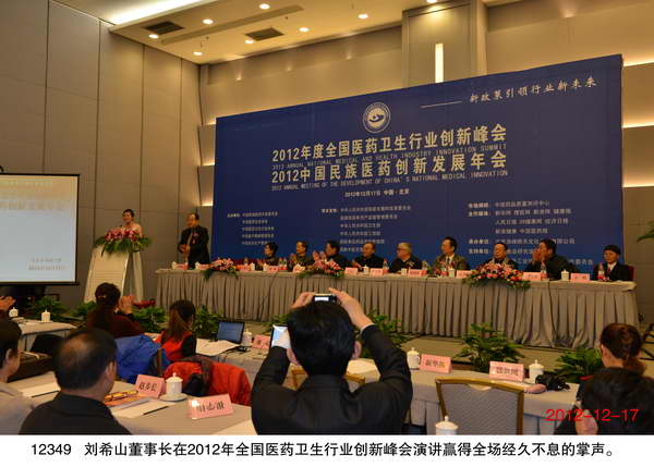 ——盛宏公司连获三项殊荣 2012 年 12 月 17 日 ,全国医药卫生行业创新峰会暨2012中国民族医药创新发展年会在北京召开,国家卫生部原副部长、中国医师协会会长殷大奎,全国工商联原副主席、著名品牌专家王治国,中国民族医药开发委员会副会长、盛宏公司董事长、潍坊盛宏中医院院长刘希山等出席了会议。大会评选出“盛宏”品牌为“2012中国中医药行业最具影响力品牌”、“2012中国中药提速自主创新第一品牌”,刘希山董事长当选“2012中华中医药创新最具影响力人物”,盛宏公司三获殊荣。