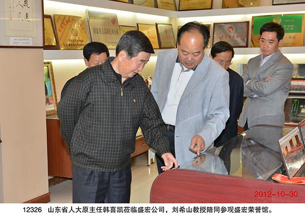 ,山东省人大原主任韩喜凯莅临盛宏公司,刘希山董事长陪同韩喜凯主任参观公司,