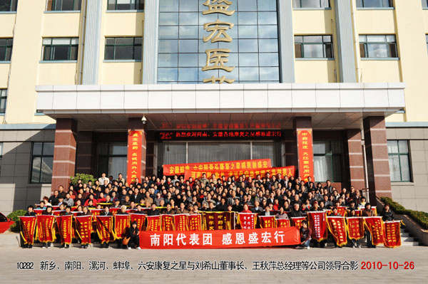 编者按:追踪盛宏中药提速,人们看到:成千上万的股骨头坏死、腰椎间盘突出、肝病、肾病等顽疾患者,躺在床上的站了起来,彻夜不眠的能安然入睡了,不能走动的能运动爬山了,长期不能上班的又回到了工作岗位……于是他们纷纷自发组织起来到盛宏总部谢恩,全国已经有25省、百余地市、103批、共计一万三千多名到盛宏向中药提速专利发明人刘希山教授献锦旗,由此在盛宏公司内诞生了一个“万旗店”。 2010年10月26日,河南南阳、新乡、漯河,安徽蚌埠、六安的300多名顽疾康复患者不顾天气降温携带锦旗到达盛宏谢恩,刘希山教授、王秋萍总经理亲自迎接并周到安排接待工作。 在公司会议室,王秋萍总经理致欢迎词,新乡中药提速服务中心主任李福江代表康复患者致感谢词。刘希山教授作中药提速健康报告,他的通俗易懂的演讲深深吸引了远道而来的客人:“治疗顽疾就是药物与疾病作战,譬如股骨头坏死是一个连的兵力,我们口服喝下一个团的药,经过消化吸收和血液循环之后,到达股骨头部位后就只剩下一个班了,一个班能对付一个连吗?针剂只需经过血液循环,但是到达病灶也最多剩下一个排了,药物还是不能取胜。中药提速疗法通过经皮给药,无需经过消化吸收和血液循环,将一个团全部直接送达病灶,兵力足、距离短、时间快,所以是用一个团来消灭一个连,这就太容易了!这也是中药提速快速治愈顽疾的关键……”形象的比喻、精彩的演讲,赢得了全场阵阵热烈的掌声。现场,工作人员还为中老年朋友们免费做了一次面部、手部的补水,快速柔嫩皮肤的补水效果让客人们对盛宏健康新品——“五白补水嫩肤素”称赞不已。 一位位康复患者争先恐后献上锦旗,一面面锦旗将主席台覆盖成“爱心台”,一张张笑脸满怀激情地述说着驱除病魔获康复的快乐感受。