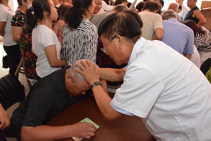 听说盛宏中医院来义诊,河北社区老百姓一大早就排起了长队。6月20日,盛宏中医院业务院长刘庭海带领专家护士,冒雨来到潍坊市高新区新城街道河北社区,为该区居民免费诊疗,并捐赠了价值近20万元的自热透化带,用于治疗居民常见的颈椎病、关节炎、肩周炎、腰腿痛等顽疾。