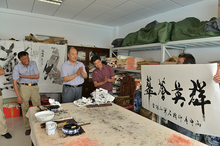 | 2016年5月21日下午,为期三天的“首届泰山国际太极拳赛”在泰山国际会展中心落下帷幕。来自我国及美国、英国、法国等十五个国家的1368名太极拳选手,102支参赛队比赛切磋。全国太极拳冠军孙爱文凭实力获得大赛精英奖,成为太极拳国际和国内赛事的“双料冠军”。6月8日,盛宏公司董事长刘希山与潍坊学院党委统战部部长徐树芝、中国著名书法家孙根堂等为孙爱文获得世界冠军表示祝贺。 盛宏公司群英荟萃。客人们对刘希山教授发明中药提速透化疗法治愈千千万万腰椎间盘突出、股骨头坏死、颈椎病、关节炎等顽疾患者给予高度评价。孙爱文先生现场再展太极英姿,孙根堂等大家也展示了书法绝技。孙根堂老师还将用朱砂亲笔恭写的《般若波罗密多心经》赠刘希山教授。