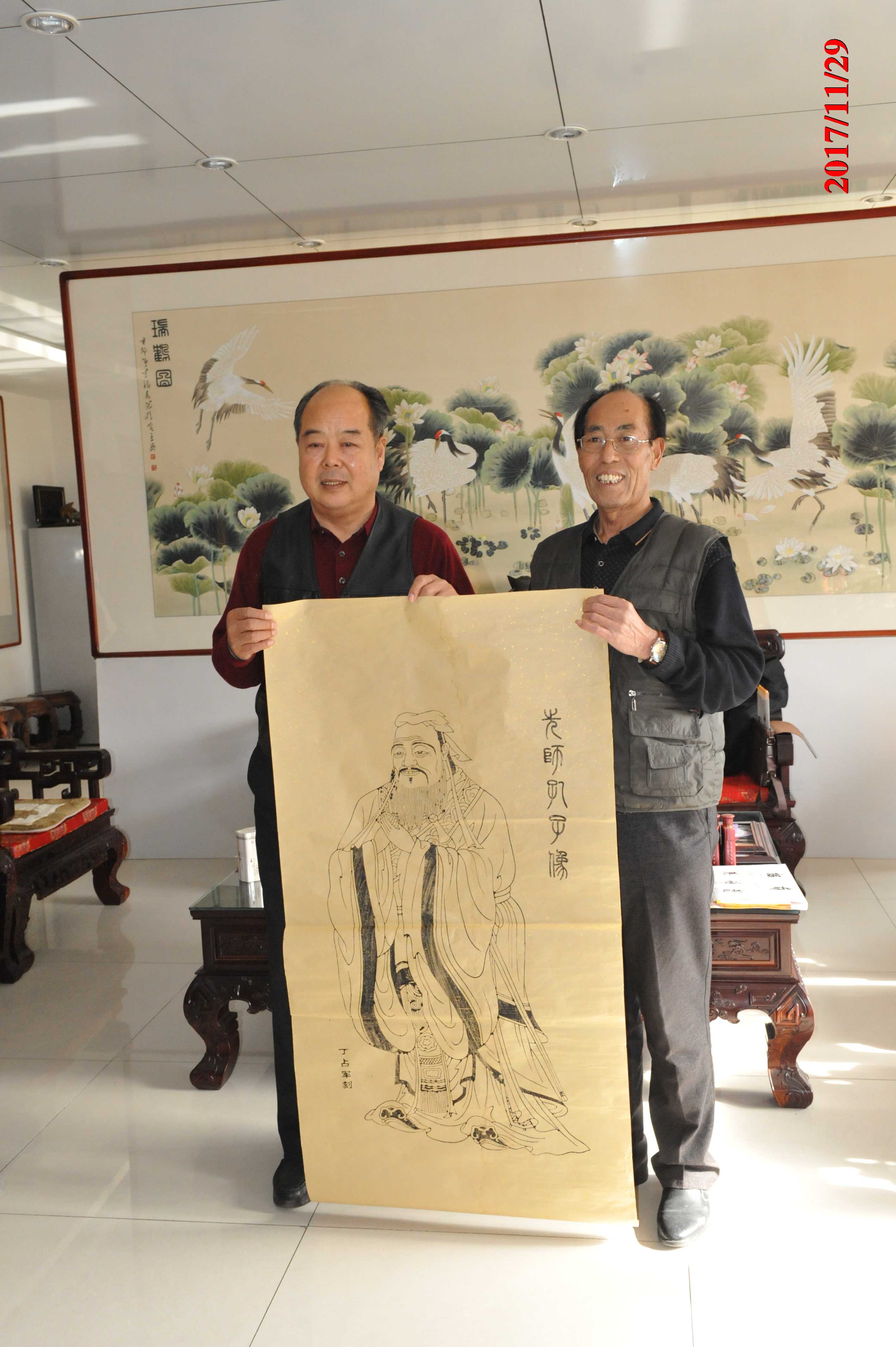 “德侔天地,道冠古今。删述六经,垂宪万世。”这是古人对孔子的高度评价。2017年11月29日,中国书画家协会潍坊联络处副主任陈在明与庄子叶两位先生,莅临盛宏公司拜访刘希山董事长。陈在明先生曾拜读刘希山教授专著《希山格言选》,深为钦佩其国学内涵,对作者相见恨晚,特向刘希山董事长赠送孔子木板刻像,以表敬意。刘希山董事长热情接待客人,并将自己创作书写的“观音送子佛”赠送二先生。
