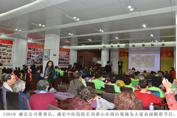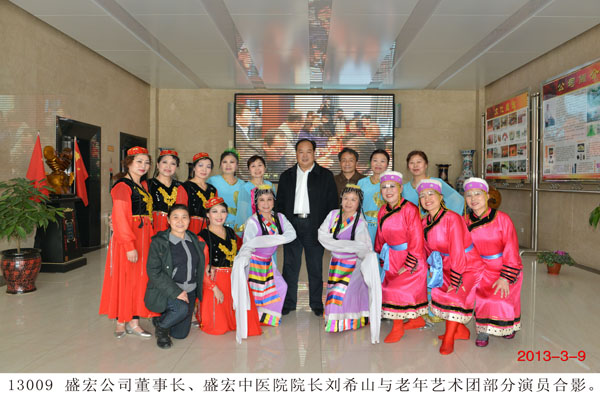 2013年3月9日,潍坊盛宏中医院“道德讲堂”高朋满座,由盛宏中医院和盛宏老年艺术协会联合组织的老年艺术团进行了精彩的演出。潍坊市盛宏艺术团、幸福艺术团、幸鸢艺术团、方舟艺术团、春晖艺术团、青音艺术团等本市知名的六个老年艺术团体参加了演出。这次演出主要是社会各界和潍坊盛宏中医院医疗康复者为报答潍坊盛宏中医院的诊疗康复救命之恩而发起的,同时也庆祝了昨天刚刚过去的三八妇女节。大家载歌载舞,歌唱医患和谐的幸福生活,歌唱未来美好的明天。山东省优秀党员、道德模范,潍坊盛宏中医院院长刘希山教授进行了热情洋溢的讲话,并引亢高歌一曲“人说山西好风光”、现代京剧选段“自己的队伍来到面前”,赢得了全场雷鸣般的掌声。刘希山院长还挥毫泼墨,现场书写了一笔“寿”、一笔“龙”、一笔“虎”和三才“福”。 刘希山院长说,潍坊盛宏中医院在经营中坚守两条原则,一是收费仅收大医院手术、诊疗等费用的20%——30%;二是见效再付款,是否见效由患者本人确定。刘希山的爱心博得了全场经久不息的掌声。 |