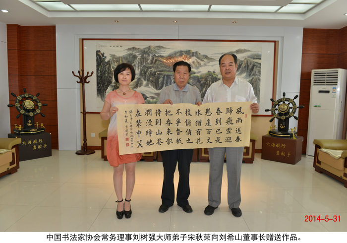 | 书画大师刘树强题赞刘希山教授 “道德楷模” 2014 年5月31号,中国作家协会会员、中国书法家协会常务理事、中国书画艺术研究会常务理事刘树强大师一行十人莅临盛宏拜访刘希山董事长,受到刘希山董事长热情接待。刘希山董事长向刘树强大师介绍了中药提速治疗股骨头坏死、腰椎间盘突出等顽疾方面取得的成绩,并安排客人们到盛宏中医院作了亲身体验。刘树强大师参观完盛宏四馆和亲自体验后对刘希山教授敬佩不已:“我今天大开眼界!到盛宏有到家的感觉,到博物馆像到了故宫……你们的疗效太神奇了,盛宏玩真的、实的,真的在为老百姓解决困难!全国竟然有27省的患者来谢恩,刘教授是真正的道德楷模!” 第二天上午,刘树强大师与各位书法家、画家纷纷挥毫泼墨,现场献上了精湛的书法和绘画艺术:“道德楷模”、“天马行空图”、“华魂”、“只做唯一”、“好客盛宏”等等。大家出手不凡,一幅幅精美的作品表达了他们对刘希山教授的崇高敬意和对盛宏的赞美之情。 据悉, 刘树强大师与刘希山董事长曾于2013年7月在“纪念毛泽东诞辰120周年百名书画名家精品联展”相遇,二人一见如故,互赠作品。刘树强先生当晚一口气读完《希山格言选》,赞叹之余写下了“民族巨宝”四个大字。 |