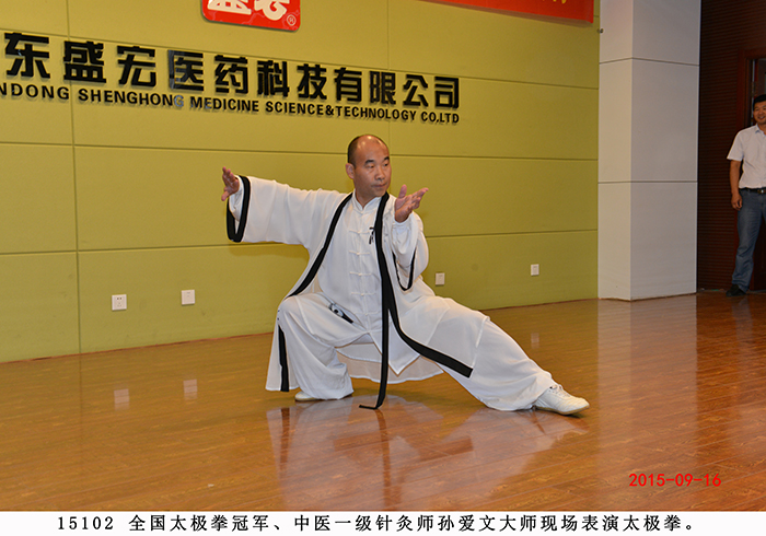 | 第152批康复患者赴盛宏谢恩——全国太极冠军、针 灸大师孙爱文莅临现场并作精彩表演 2015 年9月16日 ,安徽滁州、阜阳、淮北、淮南及江苏徐州、山东日照等地300多名股骨头坏死、腰椎间盘突出、颈椎病、肝病、肾病、糖尿病等顽疾康复患者携带锦旗,不远千里来到山东盛宏医药公司谢恩。中药提速专利发明人、盛宏公司董事长刘希山教授,潍坊学院宣传部部长徐树芝先生,潍坊日报社新闻部主任从秉政先生,全国太极拳冠军、香港武术节三届太极拳冠军、中医一级针灸师、“中华第一针”孙爱文大师,共同接见了谢恩者。安徽中药提速服务中心主任黄凤伟代表患者致感谢词。刘希山董事长应邀为客人作了精彩的健康报告,用通俗的语言揭开了中药提速透化疗法和中药提速头皮技术治疗骨病顽疾的秘密;并以慈父般的爱心,现场向特困患者赠送了盛宏电磁治疗仪。全场响起阵阵热烈的掌声。刘希山董事长代表公司聘请徐树芝先生为盛宏“文化学术顾问”,聘请孙爱文大师为“武术健康顾问”。 孙爱文大师现场表演了中华国粹——陈式太极拳。只见他下盘沉稳如磐石,上身游动似蛟龙,掌发阴阳,脚踏虚实,本无极而生太极,由小我而动乾坤,招招形神兼备,忽而云中响惊雷,风吹杨柳折断枝……陈氏太极的精髓神韵被孙大师发挥得淋漓尽致!真不愧德国、法国等十三国“武术教头”、全国散打擂台赛冠军、全国太极拳冠军、香港三届太极拳冠军之美誉。孙爱文大师的表演使感恩现场的气氛达到了高潮,台上台下响起雷鸣般的掌声。 据悉,赴盛宏谢恩的全国康复患者达到了27省、100多地市、152批,共计五万多人次。