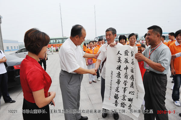 今天,四川、江苏、河南、山东的300多名顽疾康复患者分乘七辆大巴携带锦旗而来,他们得的是股骨头坏死、腰椎间盘突出、颈椎病等顽疾。在感恩行现场,康复患者争先恐后拥向刘希山董事长,献上锦旗并鞠躬感谢。张国春,平度人,2003年患股骨头坏死,不能蹲起、不能自理、痛苦不堪,2004年开始使用中药提速,治疗半年时间康复,可以正常活动与工作,至今未复发。张先生向刘希山教授深深鞠躬致谢……用户热泪盈眶、真诚谢恩的一幕幕场景令人震撼!通过使用电磁治疗仪或自热透化带而康复的谢恩者今天正好是第100批,涵盖了25省、100余地市,总人数超过了12000名。