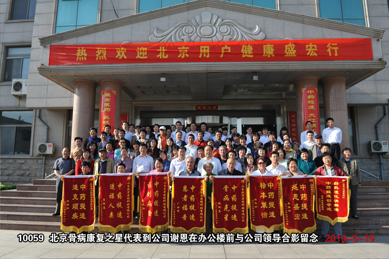 2010年5月19日,阳光明媚,万紫千红,北京市50多名颈椎病、腰椎病、股骨头坏死、关节病等顽疾康复之星,以及河北、山东、湖北、内蒙五省、市、自治区的30名患者,满怀感激之情,不远千里共赴盛宏感谢中药提速第一人刘希山教授。至此,因使用中药提速系列产品而获得健康的感恩患者达到了25省90余地市65批共计6900多名。盛宏公司总经理王秋萍向来宾致热情的欢迎词,北京中药提速服务中心主任国庆代表康复患者致感谢词。