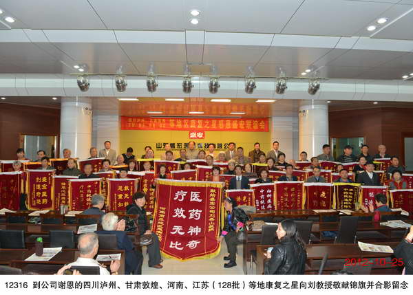 2012年10月25日,商丘、宿迁、泸州、许昌、开封、敦煌等四省六市近300名骨病顽疾康复患者到达盛宏公司谢恩,并向刘希山教授献上锦旗。谢恩者达到了27省、100多地市、128批、24000多人次。联合国美术家协会副主席、中国书画家协会副主席徐一发等社会各界人士也来到了盛宏。中国民族医药开发委员会副会长、盛宏公司董事长刘希山教授应邀为谢恩者作健康报告。 报告会一开始,播放了 32 岁的脉管炎患者刘效利二十多年求医无门、双腿溃烂、后被刘希山教授救治的纪实故事,感动了现场所有的人。刘效利本人也来到了报告会现场,他哽咽着说:“这么多年没治好的病,刘教授只用了几天时间就恢复得这么好,这是之前想都没敢想的效果。刘教授是救命恩人,不仅救治了我的腿,也保住了我的命,让我重新燃起了生活的希望!” “脉管炎是全世界都不能攻克的疾病,是不死的癌症,盛宏有办法!”刘希山教授自信地说,“我们之所以能在脉管炎、肿瘤等领域取得突破,原因就在于坚持‘两通一透’的治疗方法。”刘希山教授进一步解释说,所谓治标治本,本就是通,通则不痛。盛宏电磁治疗仪能让足量有效药物到达病灶,实现气血通畅,所以安全有效。刘希山教授还在现场悬方济世,将“一元治感冒”的秘方告诉大家。刘教授说,他还会想更多更好的办法,彻底为大家解决看病难、看病贵的问题。 康复患者怀着激动的心情献上了一面面鲜红的锦旗,一句句感激的话语,一个个深情的拥抱,现场形成了一片红色的海洋。 刘希山 教授应大家邀请现场献上墨宝,徐一发主席也挥毫泼墨写下了“盛宏腾飞,德行天下”八个大字赠刘希山董事长。 附部分康复病例: 刘宗斌,男, 45 岁,河南开封人,患有股骨头坏死 3 年,曾经瘫痪在床不能行走,甚至产生了轻生的念头。今年年初,经朋友介绍开始使用盛宏电磁治疗仪,到 2012 年 10 月 25 日 为止 8 个月,已经完全康复。刘宗斌现在是开封服务中心主任,他说,刘教授不仅救了他自己,还挽救了他整个家庭。他希望更多的人能够通过盛宏重新获得健康。 王显扬,男, 81 岁,四川泸州人,患颈椎病多年。去年年底,因颈椎病压迫神经导致脑梗,医院已经通知病危。后来得知盛宏电磁仪可以治疗颈椎,于是开始使用。到 2012 年 10 月 25 日 已经使用了 9 个月,已经完全恢复健康,身体非常硬朗。 孟新丽,女, 55 岁,河南商丘人,颈椎病骨质增生。患病多年,非常严重,通过家人得知盛宏电磁治疗仪,到 2012 年 10 月 25 日 为止已经使用了 8 个月,已经完全康复。孟新丽说,希望越来越多的人能早日通过盛宏电磁仪摆脱痛苦。 张玉英,女, 69 岁,河南许昌人,腰、膝关节,腿肿了十几年,动过手术也没有治愈,通过姐姐介绍得知盛宏中药提速产品,到 2012 年 10 月 25 日 使用了 6 个月,已经恢复健康,她因感激流下热泪。 曹长专,男, 55 岁,江苏宿迁人, 2008 年患股骨头坏死多年,曾跑遍了南京各大医院,均无法治疗。后来通过报纸得知盛宏中药电磁治疗仪,使用 1 年的时间好转,因为父母治病停用两年。今年因加重又使用 3 个月,出现奇迹,腿不痛了,拍片大夫说基本康复。曹长专说:“希望广大病友患了骨病不要东跑西跑了,就到山东盛宏来,肯定会治好的!” |