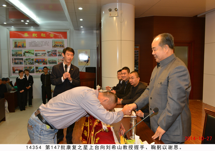 盛宏公司迎来 第147批谢恩者 “今天我是代表自己和我的母亲来感恩的,多年来母亲一直因颈椎病引起四肢麻木、腰腿疼,基本干不了家务活。刘希山教授送给了我一盒自热透化带,拿回去给母亲使用,结果短短几个月时间竟把长年的顽疾给治好了!昨天下午,母亲听说我今天要来盛宏,已经数年不能动缝纫机的老母亲赶制完成了二十多双鞋垫。母亲说,我们也没什么值钱的东西送给刘教授,天冷了送几双鞋垫,希望刘教授能收下!”潍坊道德讲堂总堂副主任、潍坊青年志愿服务中心副会长刘建强在感恩盛宏行现场激动地说。这种发自肺腑的真情流露也引起了很多人的共鸣,并打动了整个会场。 2014 年10月27日 ,江苏、河南、山东、四川、河北、安徽等地的300多名股骨头坏死、腰椎间盘突出、颈椎病、关节炎等顽疾患者来到盛宏公司谢恩,并向刘希山教授敬献了锦旗。山东省优秀共产党员、道德模范、盛宏公司董事长刘希山,潍坊道德讲堂总堂副主任、潍坊青年志愿服务中心副会长刘建强等接见了谢恩者。至此,赴盛宏谢恩的康复患者达到了27省、100多地市、147批、共计五万多人。 河南商丘服务中心主任杨绪英致热情洋溢的感谢词。刘建强主任作重要讲话,高度评价了刘希山教授的医术、道德和文化。 刘希山董事长应邀为大家作健康报告。在报告中,刘教授创新的“用疏不用堵”的中医理论与古代大禹治水的道理如出一辙,显示了透化疗法、经皮给药、活血化瘀治疗顽疾的高明。而刘希山教授“悬方济世”的社会效益,似乎又超越了“悬壶济世”的局限性,他为人们应对不断变异的感冒病毒和日益昂贵的医药费提供了免费妙方,让人们花很少的钱就能快速治愈感冒。客人们对刘希山教授这种无私奉献的精神报以经久不息的掌声。报告结束后,大家争献锦旗,争相与刘希山教授紧紧握手,深情拥抱。 附部分康复病例: 1 、葛世秀,女,山东日照人,60多岁。2014年4月份患腰椎间盘突出,去医院治疗一晚上就花去450多元,实在承担不起昂贵的费用,住了半个多月就出院了。后来了解到盛宏透化疗法,使用不到一个月感觉好了很多,10月基本上痊愈。 2 、申文斌,男,安徽蚌埠人,40岁,足疗店老板。2008年开始膝盖疼痛,中西、西医都试过,均无明显效果。正好自己的足疗店与盛宏服务中心挨着,每天看着那么多人来看病,想着自己也去试试看,结果使用了仅3个药包,感觉真的好了。自己还表示有诚意将盛宏的治疗脚气的产品放到自己店里使用,将盛宏精神发扬光大。 3 、赵金杰,男,河南商丘人,40多岁。2008年身体不舒服,去医院检查出肝病,吃药、打针、偏方、去医院均无明显效果。使用盛宏透化疗法仅仅6个月的时间,现在(2014-10-27)已经基本康复。 |